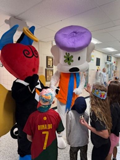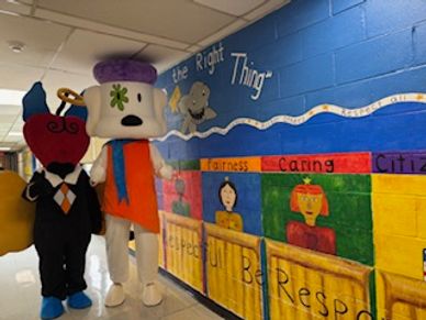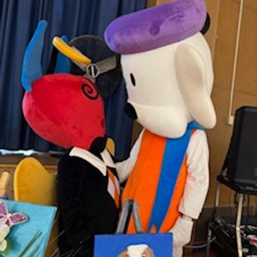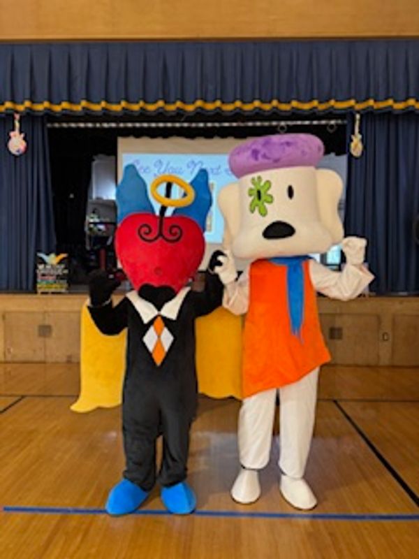 Artie and Bones enjoy interacting with the students during the assemblies and the children are so excited when they enter the room and join the fun!